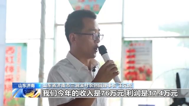 山东省济南市三涧溪村农创园理事长 王元虎:我们现在是121位社员,一共出资了是1397000元,我们这两茬西红柿和甜瓜已经就全部收清了。我们今年的收入是76万元,利润是17.4万元。根据我们出资比例,10.6%(的收益率)我们进行分红。
