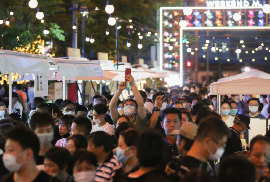 2020年6月6日,市民在上海市黄浦区的一处夜市消费休闲。新华社记者 丁汀 摄