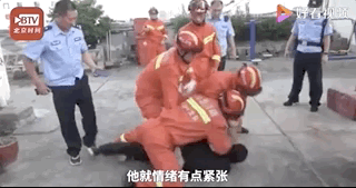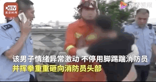 消防员死死抱住该男子