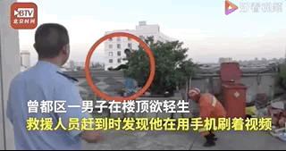 一男子在楼顶企图轻生