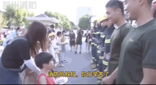 “消防员叔叔们,你们辛苦了”