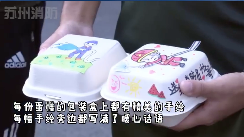 将蛋糕送给消防员叔叔