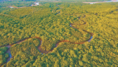 红树林生长在热带、亚热带海岸潮间带,和珊瑚礁、盐沼、海草床等并列为重要的典型海洋生态系统,在净化海水、防风消浪、固碳储碳、维护生物多样性等方面发挥着重要作用,被誉为“海岸卫士”“海洋绿肺”。涨潮时,大片红树林会被海水淹没,成为鱼、虾、蟹、贝类等生长繁殖的庇护所;等到海水退去,红树林又会成为各种鸟类觅食的天堂。