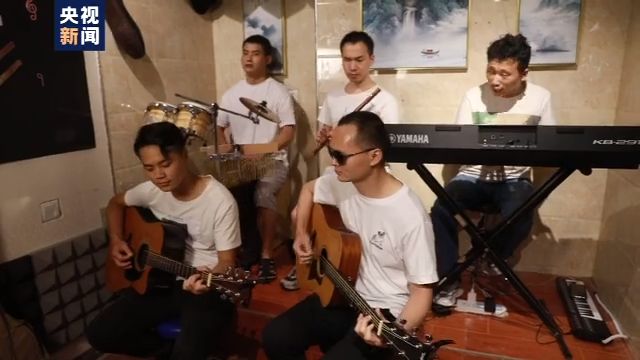 这个不到十平方米的狭小空间,就成了他们排练音乐的小天地。从翻唱作品到原创歌曲,他们在原本黑暗的世界里用音乐燃起了心中的光芒,让生活与梦想同行。