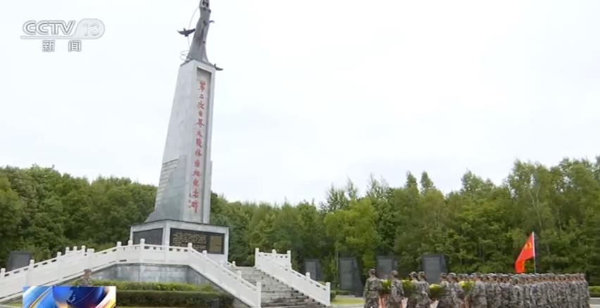 在黑龙江省虎林市,当地人武部组织将要入伍的新兵来到抗战纪念碑前,大家敬献花篮,向军旗宣誓,坚定从军报国信念,并邀请抗联战士后代、抗战老英雄,重温抗战历史。