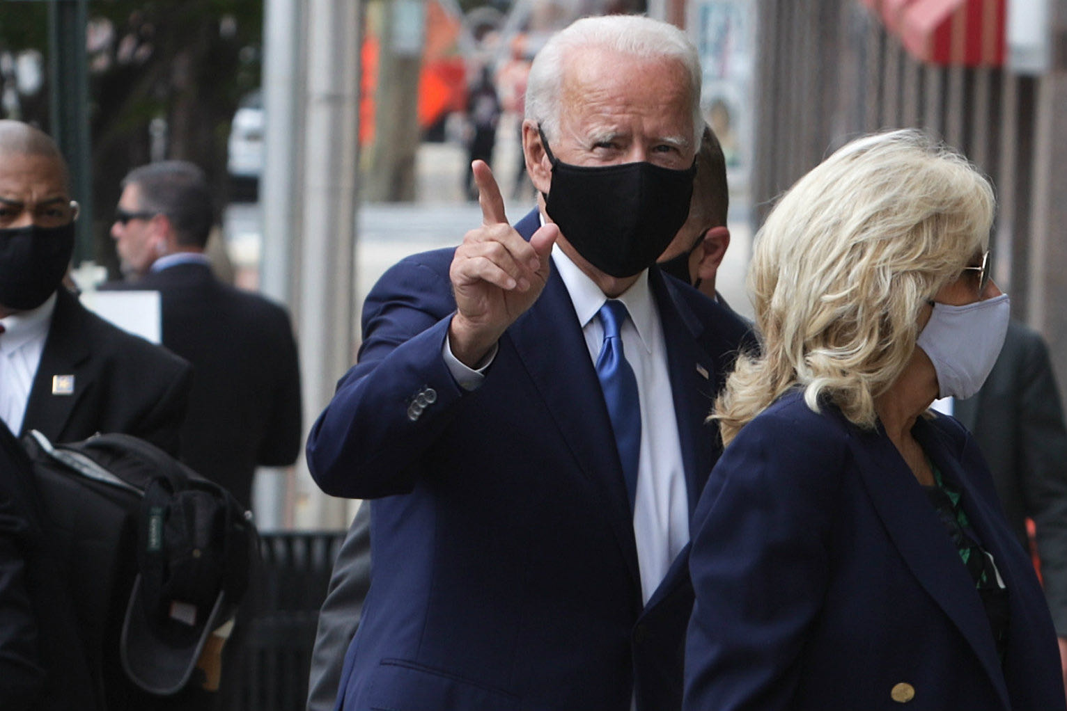 当地时间9月3日,美国前副总统、民主党总统候选人拜登与其妻子吉尔访问了连日来因警察枪击非洲裔男子布雷克而抗议不断的威斯康星州基诺沙市。拜登的到访离美国总统特朗普视察当地仅相隔48个小时。