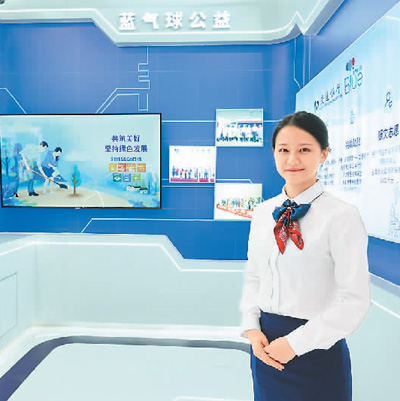 服贸会金融服务展馆内,中国交通银行展区工作人员迎接观众的到来。