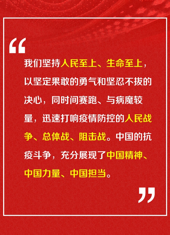 全国抗击新冠肺炎疫情表彰大会9月8日上午10时在北京人民大会堂隆重举行。中共中央总书记、国家主席、中央军委主席习近平向国家勋章和国家荣誉称号获得者颁授勋章奖章并发表重要讲话。红网时刻新闻带您一起回顾习近平在此次大会上讲话的金句。