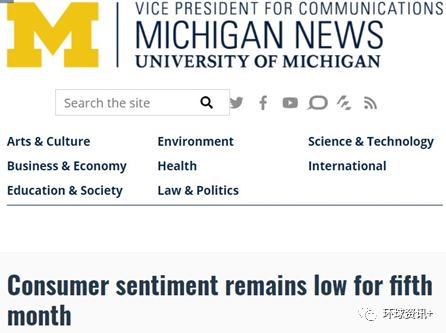 △密歇根大学消费者信心指数显示,美国消费者信心连续5个月低迷。