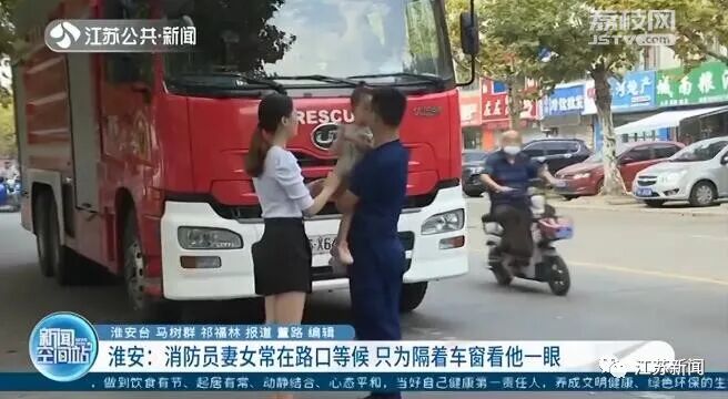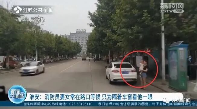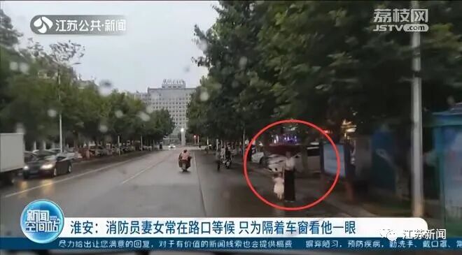 在这一段段消防车行车记录仪录下的画面里,陆洋妻子有时抱着女儿,有时牵着女儿的手,雨天里母女俩则打着伞,一起在路边等候。