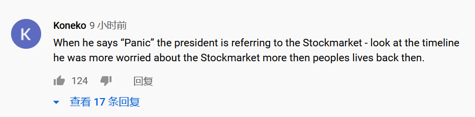 “当总统提到‘恐慌’时,他指的是股市——看看时间线,相比民众的性命他当时更担心股市。”