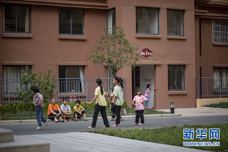 8月12日,云南省镇雄县鲁家院子易地扶贫搬迁安置点的孩子们在院里玩耍。新华社记者 江文耀 摄