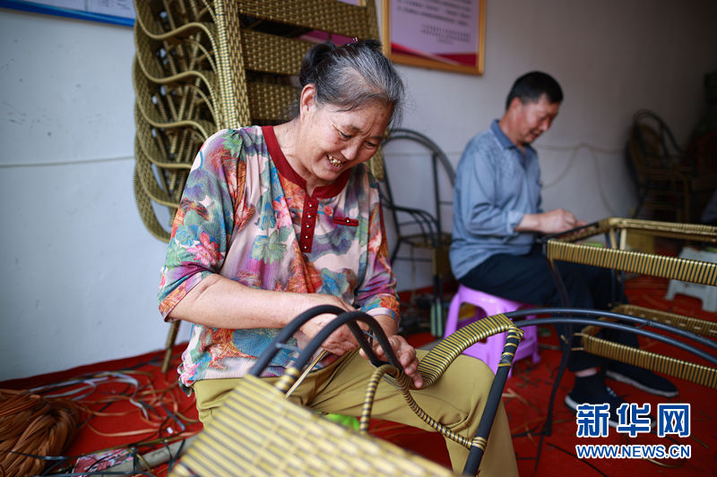年纪大些、行动不便或有其他困难的人,则在小区新建的扶贫车间上班。56岁的杨青中以前打工受伤落下残疾。街道安排他在扶贫车间学编藤椅,现在他一天能挣45块钱。
