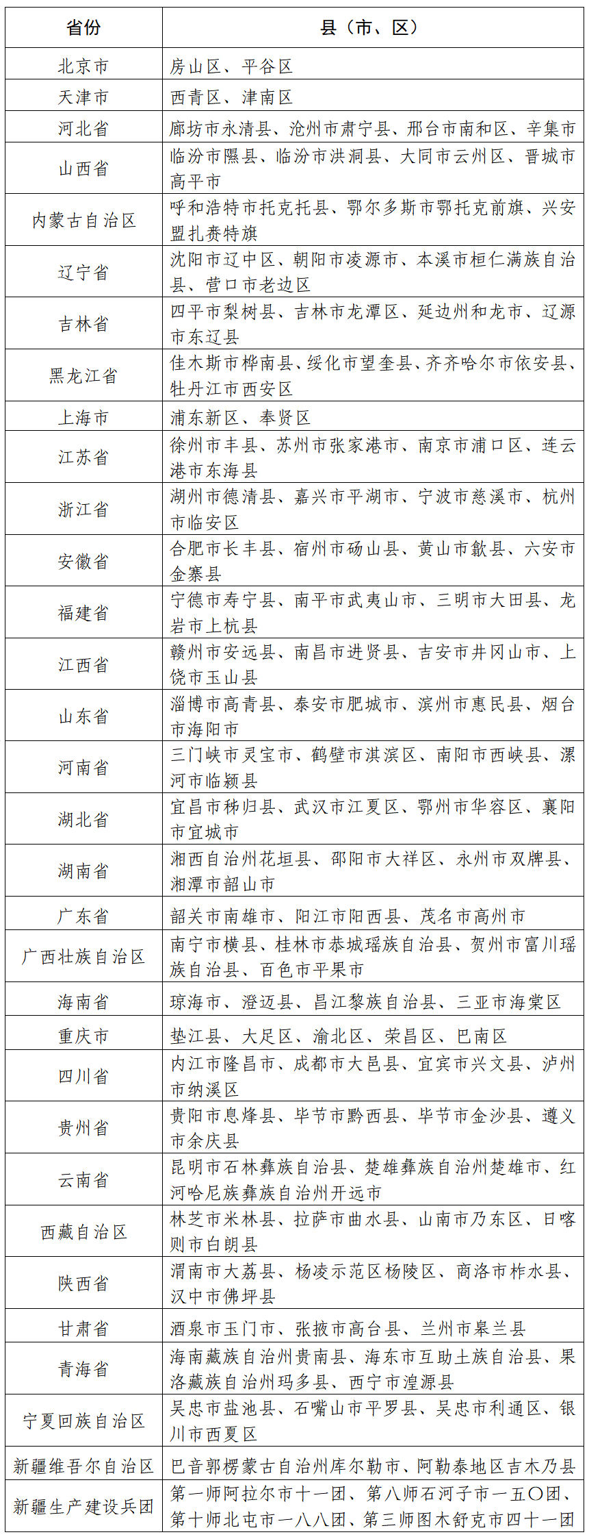 国家数字乡村试点地区公示名单