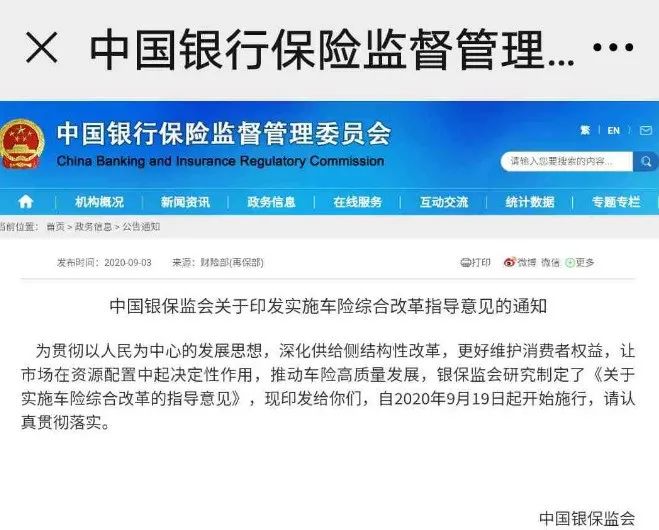 据中国银保监会《关于实施车险综合改革的指导意见》,车险综合改革将9月19日在全国正式落地实施。