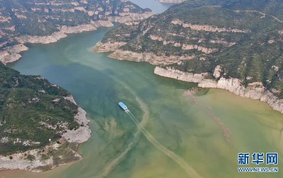 这是9月12日在河南济源拍摄的黄河三峡景色(无人机照片)。新华社记者 郝源 摄