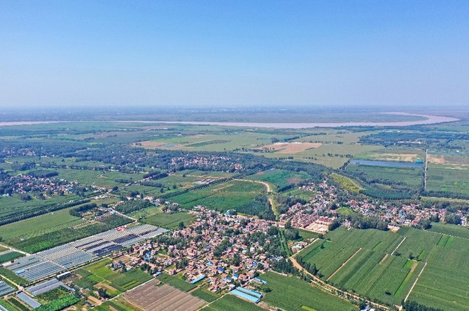 河南省兰考县东坝头镇张庄村及黄河河道。新华社记者 冯大鹏 摄