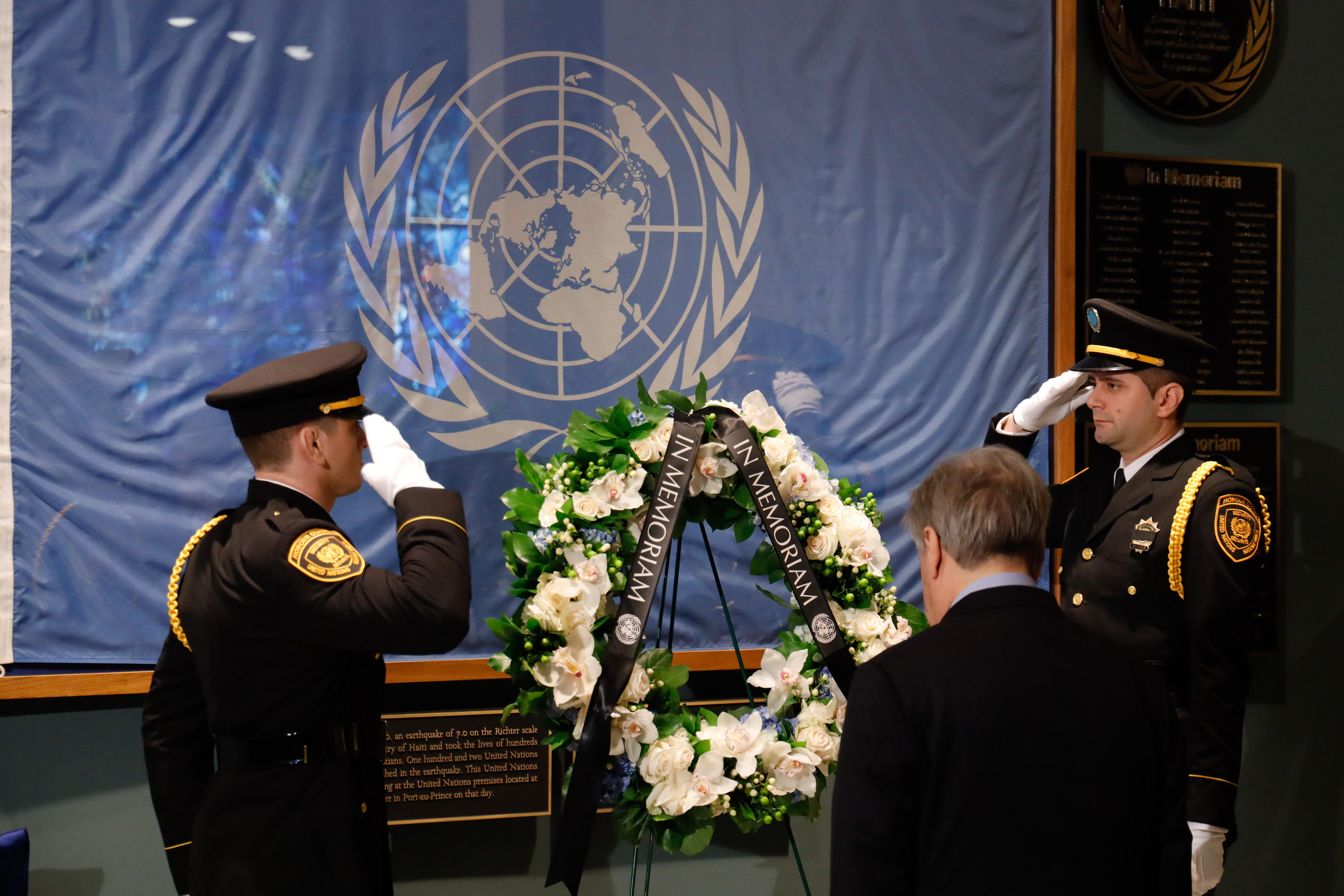2020年1月17日,海地大地震10周年之际,联合国举行仪式缅怀包括联合国殉职人员在内的数十万遇难者。
