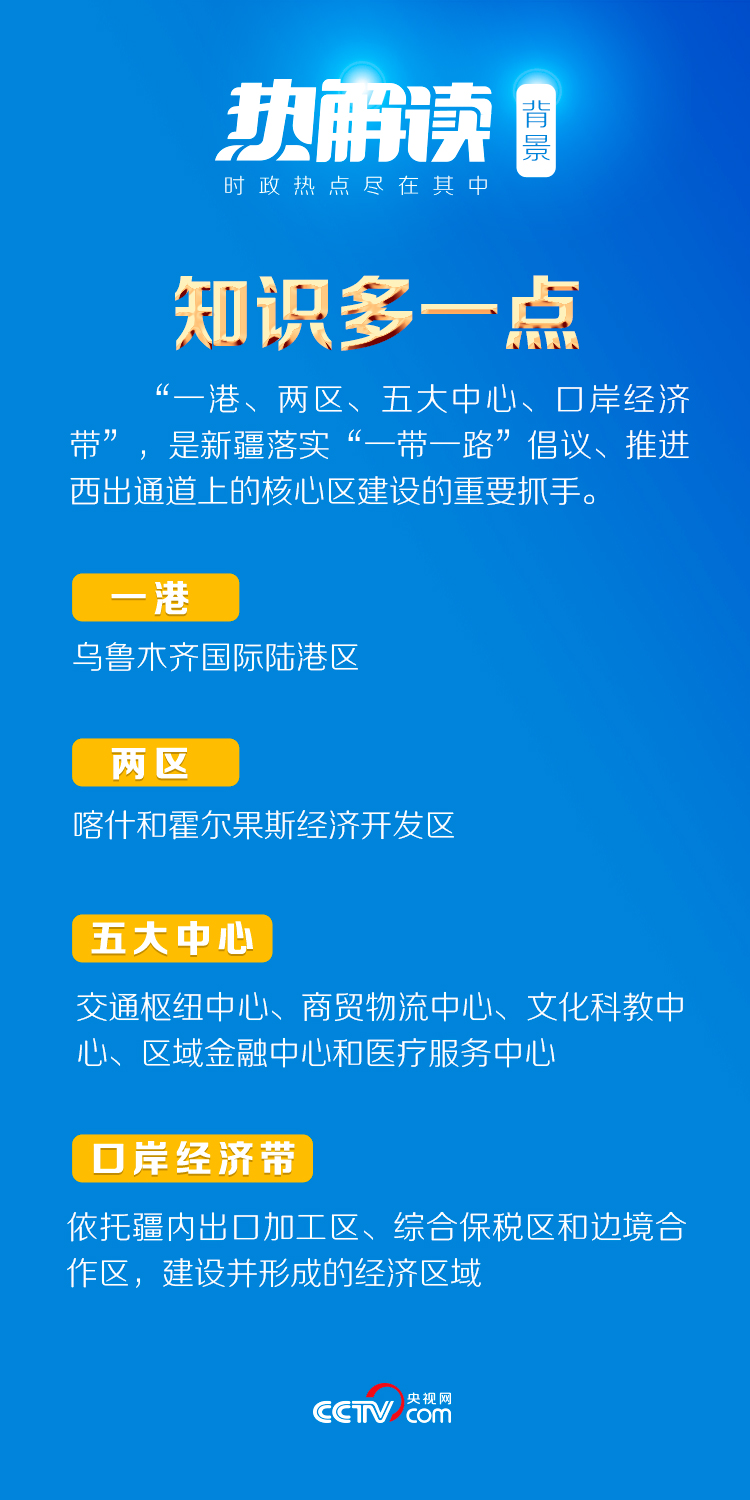 ——依托“一港、两区、五大中心、口岸经济带”,新疆着力打造向西开放的桥头堡。