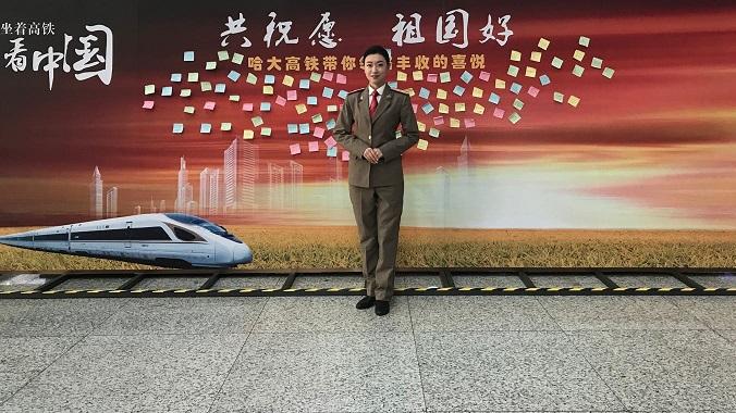 假期第三天,央视新闻国庆专列准时“发车”,乘着世界上第一条高寒高速铁路——哈大高铁来到东北!每一代中国人都有一份属于自己的那一份“铁路记忆”,而铁路工作人员身着的制服,就是这每一段记忆中最有标志性的“小符号”。央视新闻主播、黑龙江小伙儿顾国宁现场换装铁路制服,与乘务员聊聊那些你不知道的“铁路记忆”。