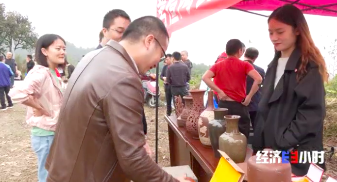 在临时销售区,省级非物质文化遗产,当地有着600多年历史的隆昌土陶也被搬到了现场。