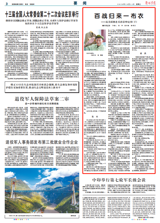 ——抗美援朝老兵孙景坤纪事(下)