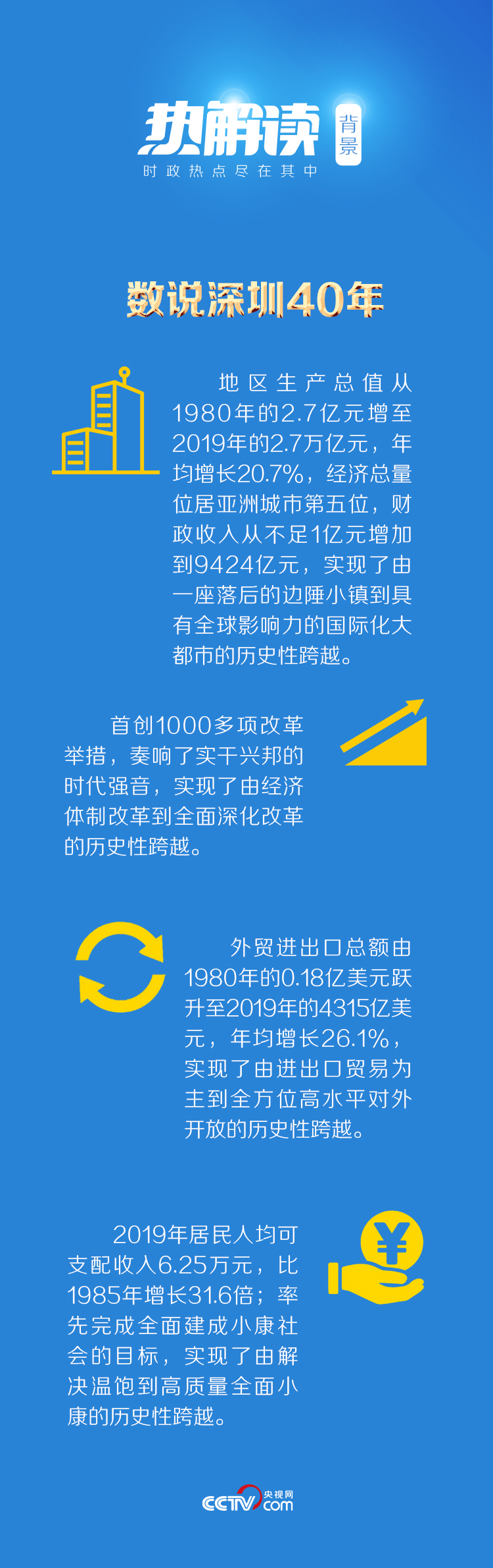 习近平总书记在讲话中深情回顾了深圳经济特区“看似寻常最奇崛,成如容易却艰辛”的发展历程,用“一张白纸上的精彩演绎”总结了深圳40年来取得的显著成就。