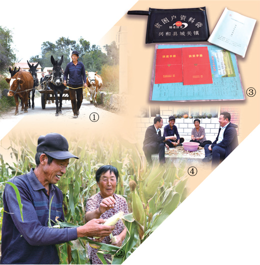 这是内蒙古兴和县城关镇二十三号村贫困户郭玉发的普通一天:凌晨4点半就起床喂牛喂驴,吃过早饭,天一亮就出门把牛、驴放到河滩地,自己去收割玉米,午饭后接着收割,天黑后才牵着牛儿驴儿回家,晚饭后还要准备第二天的饲料。