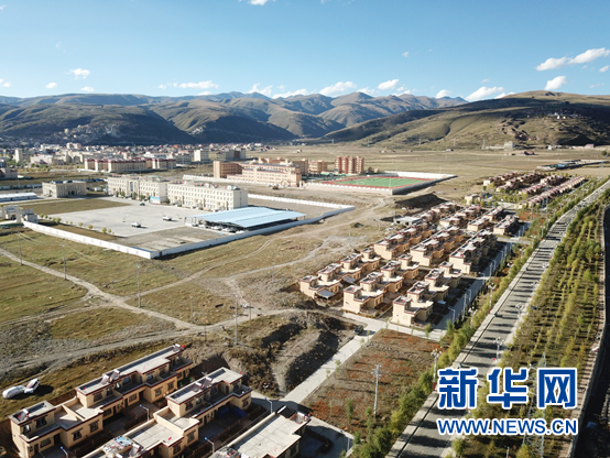 (吉绒隆沟易地扶贫安置点及周边配套设施。新华网曹鹏摄)