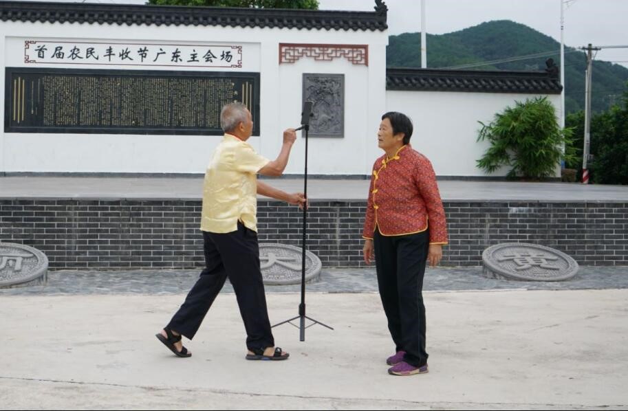 梅州盛产柚子,金秋正迎来丰收季节。走进大黄村,记者远远就听到了别具风格的客家山歌。79岁的村民廖胜华和71岁的老伴儿李圆妹手持自拍杆,边走边唱,正进行手机直播。镜头里,柚子树上缀满硕大的果实。