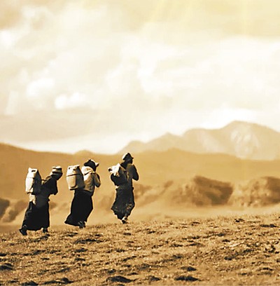 易地搬迁前,尖扎县山上的村民用水难,只能到山下背水。(尖扎县委宣传部供图)