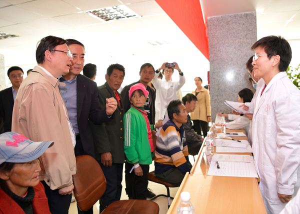 同济大学党委书记方守恩看望同济大学附属医院在云龙义诊的医生江平 摄