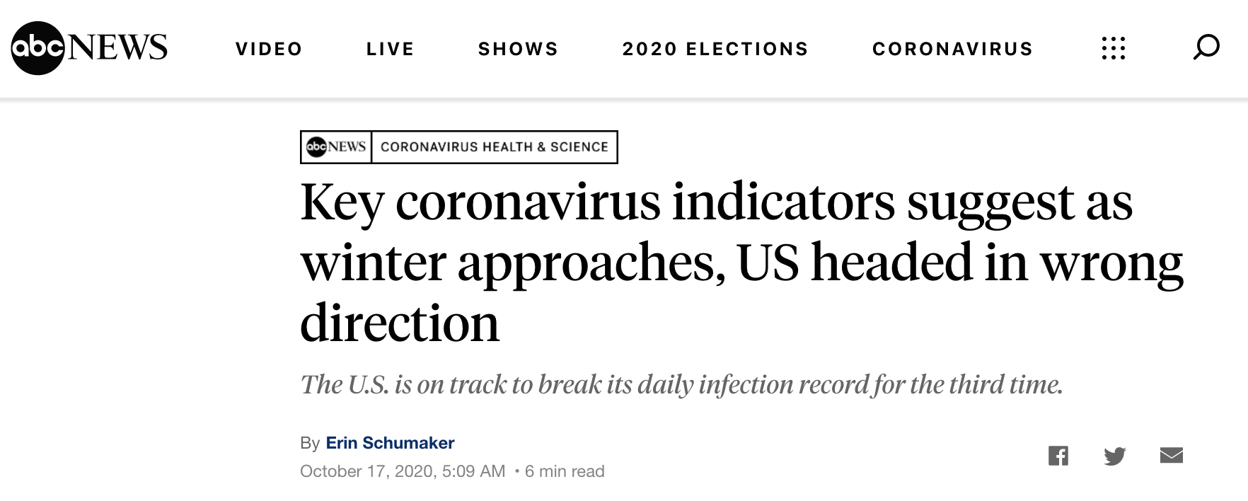 △数据显示美国或将第三次打破每日新增确诊病例数纪录(图片来源:ABC)