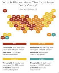 令美国各界倍感忧虑的是,目前新冠疫情数据再次出现反弹上升势头。《华盛顿邮报》数据显示,10月15日,美国单日新增新冠确诊病例超过了6.4万例,达到7月末以来的新高。而且,全美44个州的每日新增病例数,均较一个月前出现上涨。