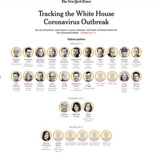 克里斯蒂的现身说法成为了当天美国各大媒体的报道焦点。而仅仅一天后,也就是10月16日,美国约翰斯·霍普金斯大学统计数据显示, 美国新冠确诊病例已突破800万,死亡病例超过21万。