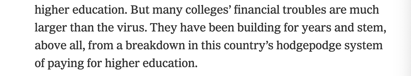 据《纽约时报》报道,美国混乱的高等教育资金体系正在面临崩溃,疫情加速了这一进程。