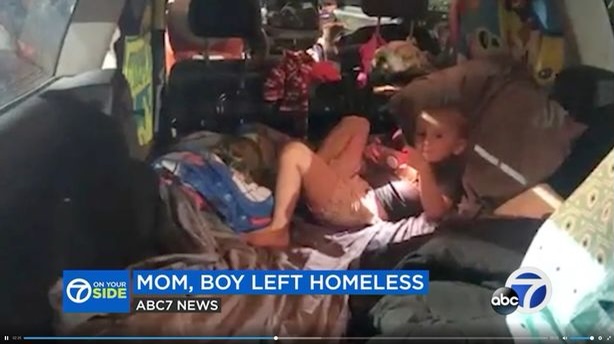 △谢尔比·休斯4岁的儿子在车中生活 (图片来源:美国国家广播公司)