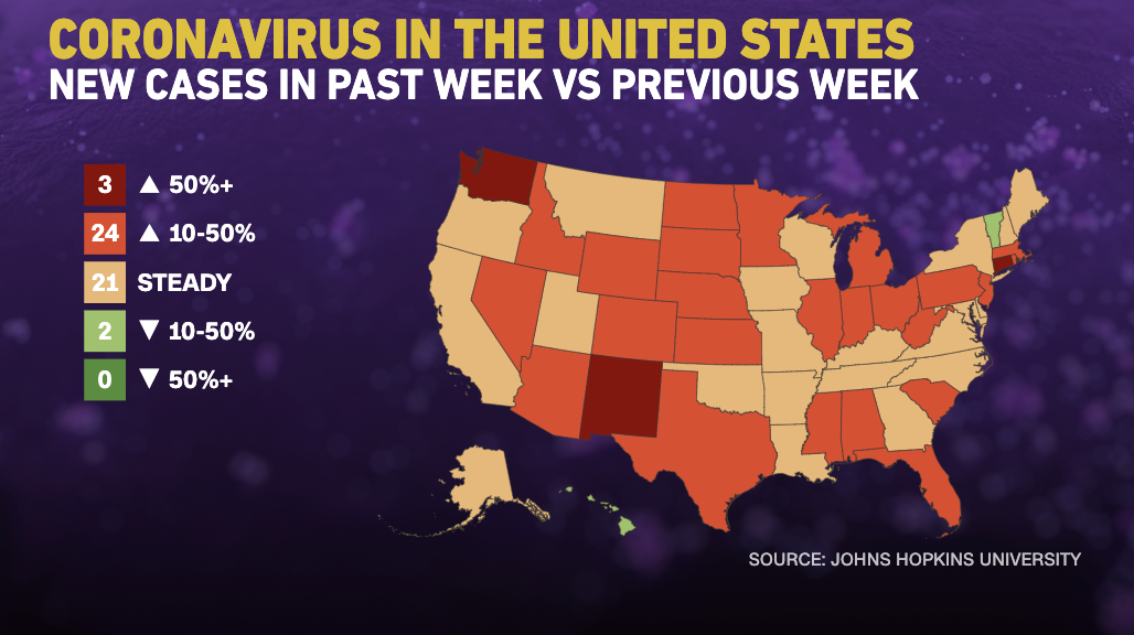 据美国卫生专家表示,随着秋季的到来,预计新冠肺炎新增确诊病例将会开始激增。而近日美国各地的上升病例也似乎证明了这一点。据当地媒体10月19日消息,与上周相比,新冠肺炎新增确诊病例数在27个州呈上升趋势,21个州呈稳定趋势,只有夏威夷和佛蒙特州的病例数呈下降趋势。虽然疫情形势再次变得不容乐观,但美国国家过敏症和传染病研究所所长安东尼·福奇博士却表示,除非疫情形势“真的很糟”,否则不建议实行全国范围的“封锁”措施。他在当地时间18日晚接受美国哥伦比亚广播公司采访中表示:“先忘记封锁的可能性吧,我们将使用公共卫生措施来保证我们的安全。”