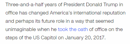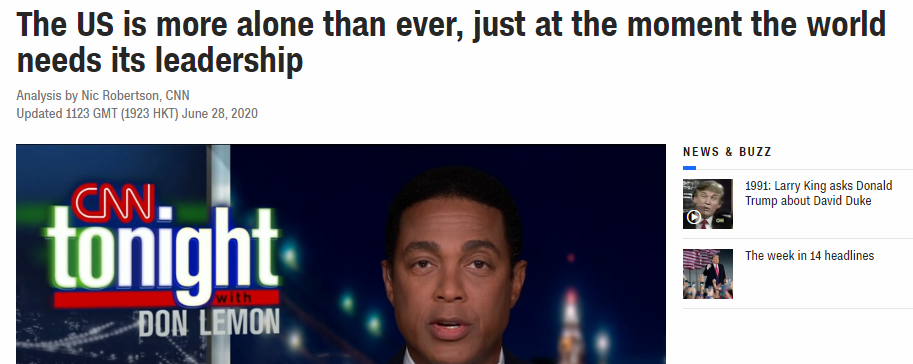 △美国有线电视新闻网(CNN)报道:在全球正需要领导者的时刻,美国却比以往任何时候都更加孤立