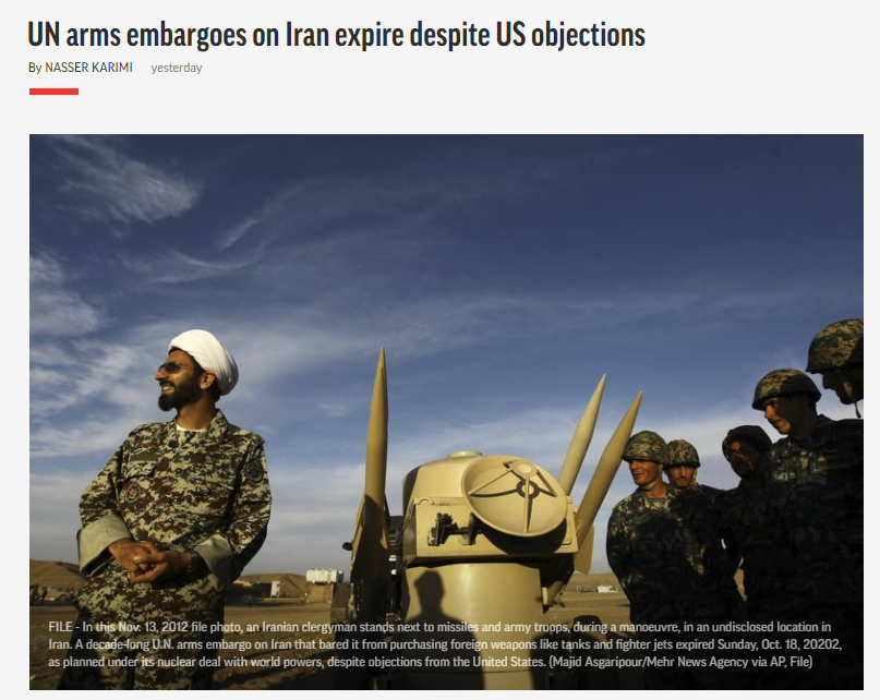 △美联社报道:尽管美国反对,联合国仍取消了对伊武器禁运。