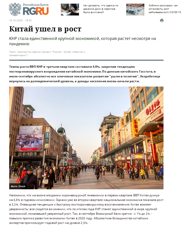 《俄罗斯报》网站19日在《中俄锐评》专栏刊发题为《中国成为疫后全球唯一实现正增长的主要经济体》的评论文章。文章指出,前三季度中国经济增长由负转正,同比增长0.7%,失业率回落,居民收入攀升。中国成为全球唯一实现经济正增长的国家。文章强调,中国政府采取的纾困措施将进一步推动国内经济上行,中国民众也对未来充满信心。