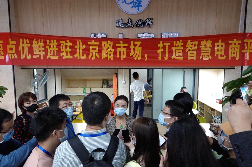 图为北京路市场智慧电商平台负责人介绍情况