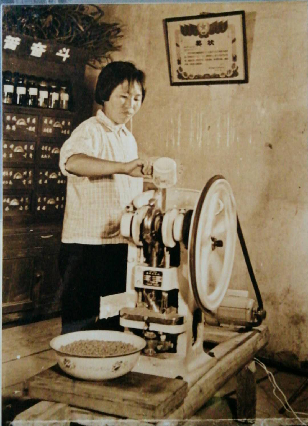 李春华在制药。1967年,她在家乡成立了湖南省第一个农村合作医疗站