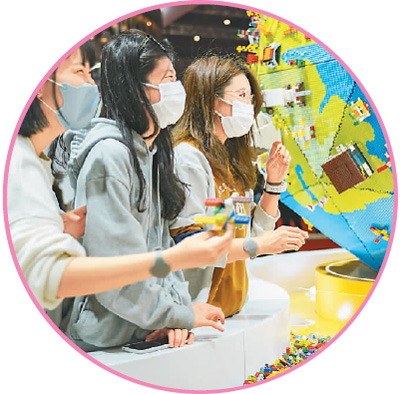 11月8日,观众在乐高展台体验乐高玩具。新华社记者 张豪夫摄