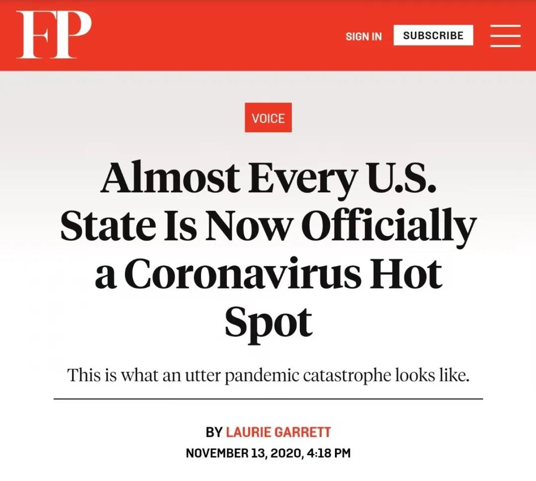 美国《外交政策》杂志网站刊文《全美各州都是疫情高危之地》