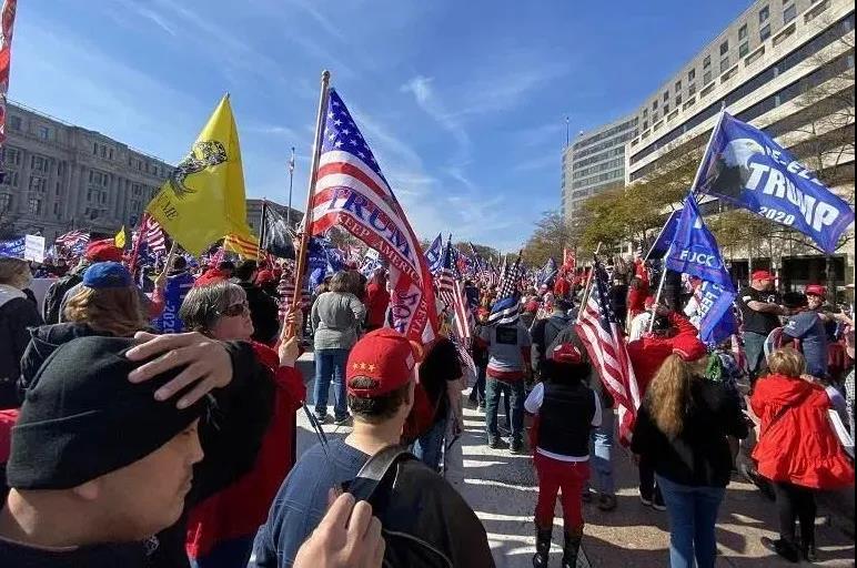 当地时间11月14日,包括“骄傲男孩”在内的多个支持特朗普的右翼组织在华盛顿举行大规模游行,抗议美国媒体公布的大选结果。