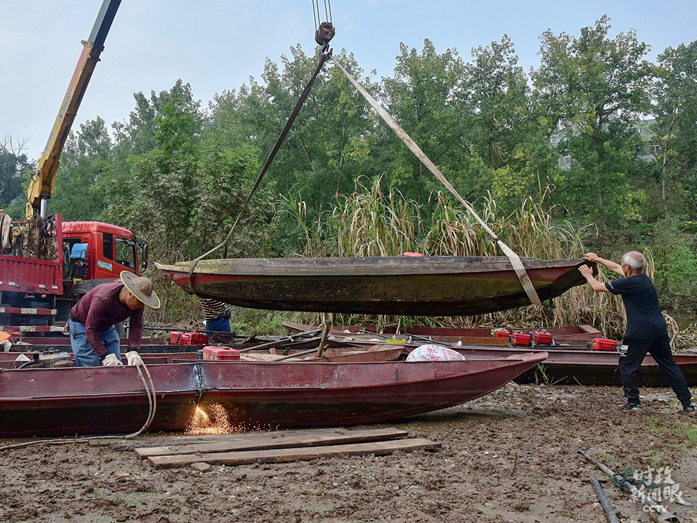 △“长江禁渔”实施后,四川内江东兴区集中拆解渔船,352名渔民全部上岸,转产转业。