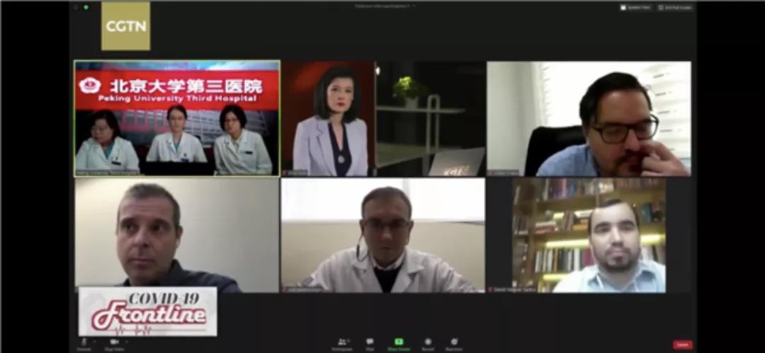 △北京大学第三医院援鄂专家与巴西专家“云分享”抗疫经验。