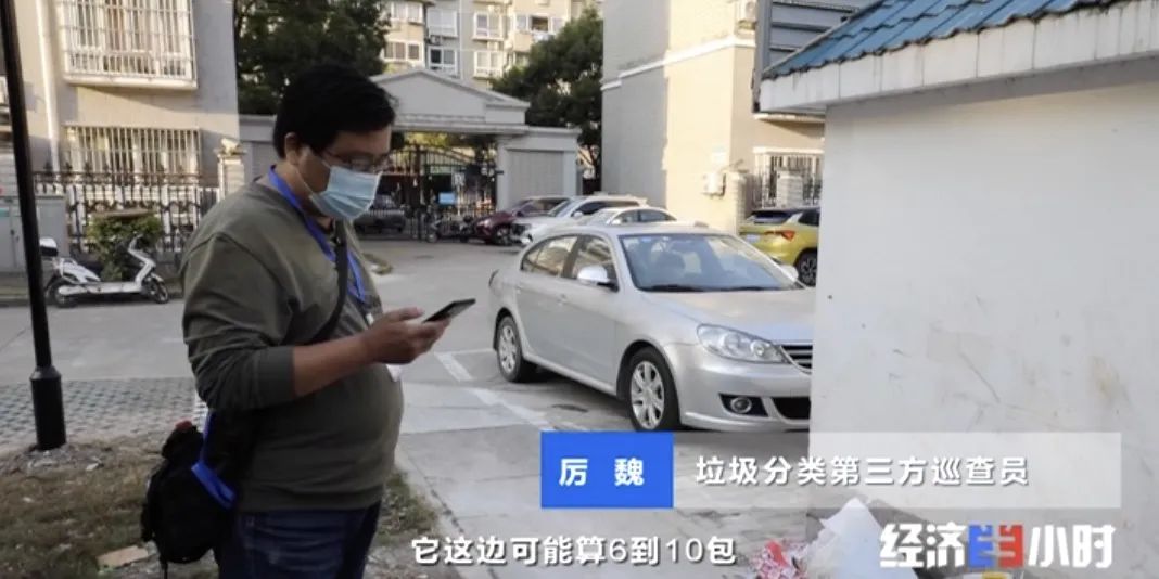 如何打分?怎么调查?记者跟随北蔡镇委托的第三方评测机构的巡查员进行了暗访,他来到一个小区,发现有很多小包垃圾被随意堆积,马上掏出手机拍照。