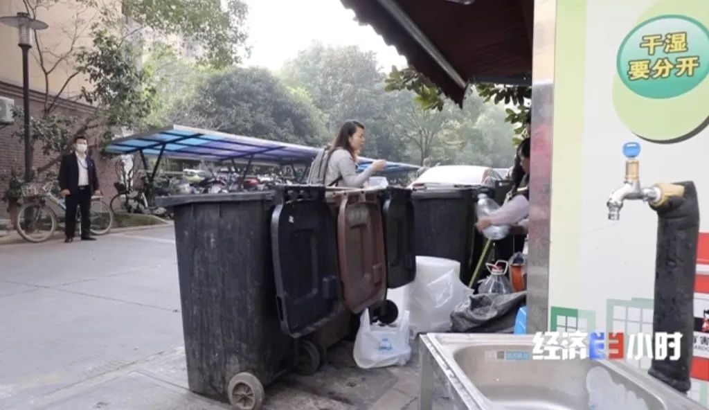 北蔡镇振东一居小区,去年这个小区就开始实行垃圾分类。在这里,记者最大的感受就是垃圾分类管理注重细节,因为湿垃圾要破袋投放,所以投放点旁边,特意安装了洗手池,供居民洗手,投放点下面铺设了下水管道。